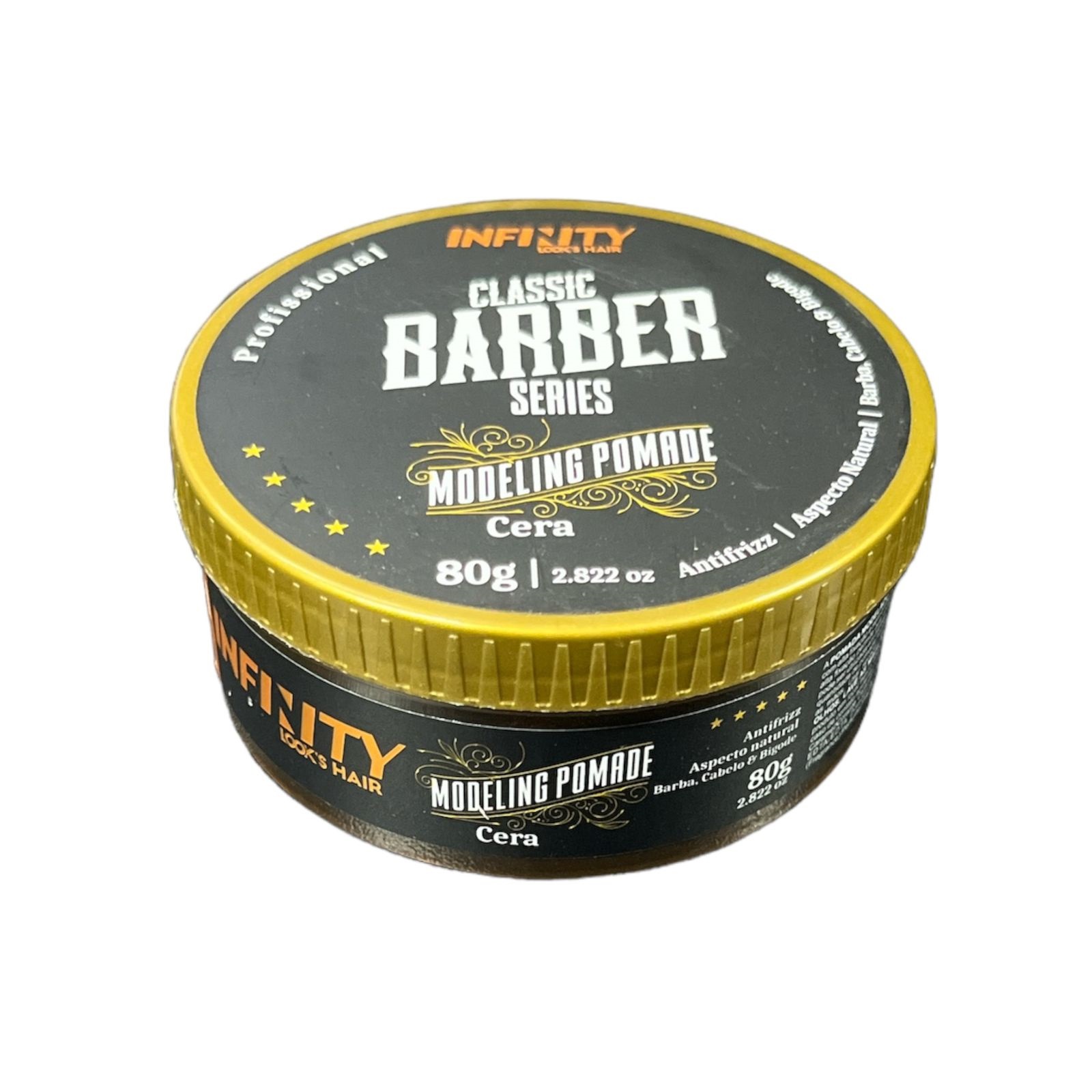 A POMADA MODELADORA CERA INFINITY LOOKS CLASSIC BARBER para cabelos masculinos com alta fixação e sem brilho, ideal para fixar e definir qualquer tipo de cabelos, de curtos a compridos. A alta fixação permite que você crie os mais variados penteados com aspecto natural. A pomada cera pode ser utilizada em barbas, cabelos e bigodes. MODO DE USO: Com os cabelos secos, aplique uma quantidade de pomada na palma da mão para uma melhor distribuição, esfregue o produto em ambas as mãos. Usar secador para melhores resultados.