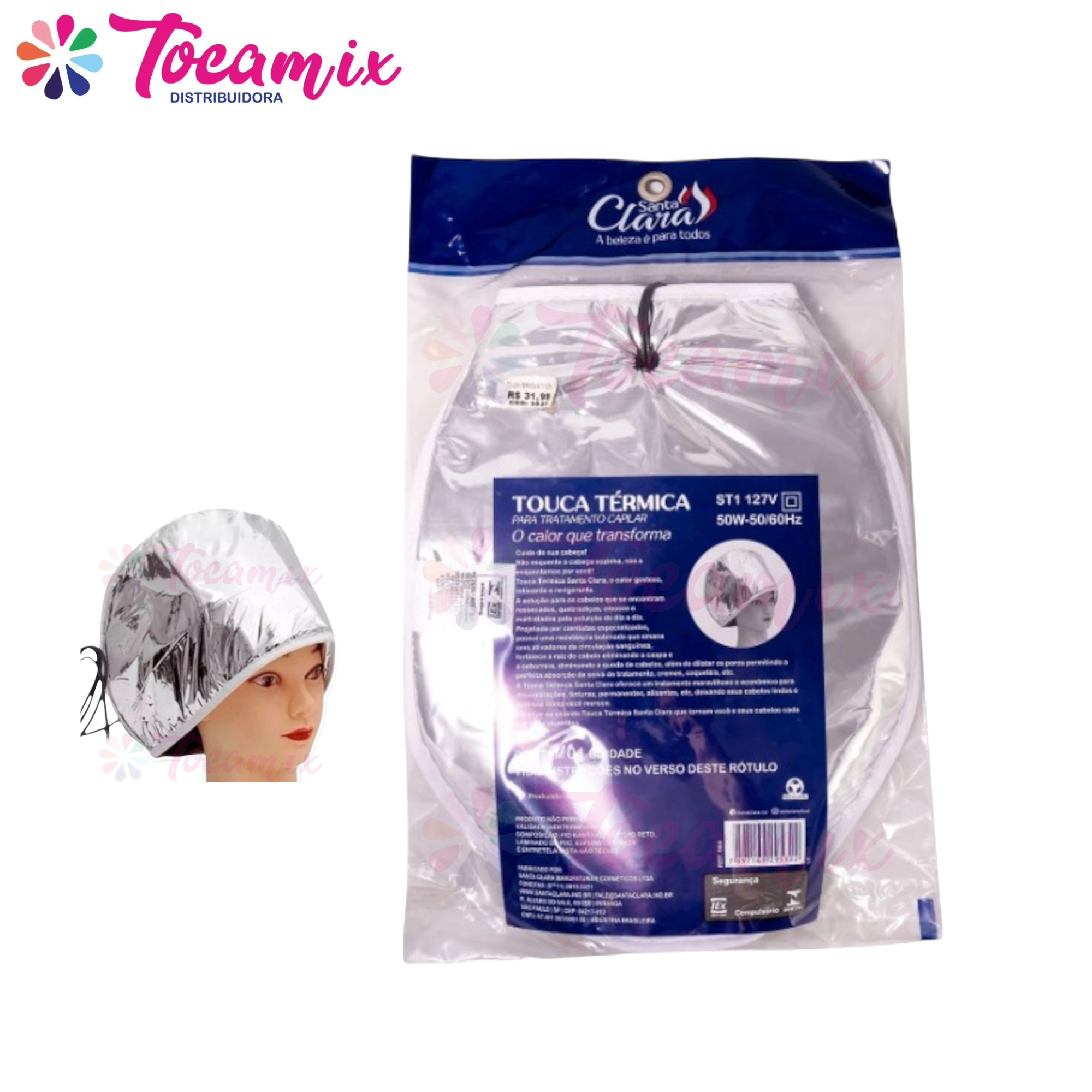 - Colocar uma touca plástica (para maior durabilidade e higiene da touca térmica) e em seguida colocar a touca térmica, deixando esquentar por 20 minutos sem desligá-la, após este tempo desligar a touca térmica deixando-a esfriar naturalmente na cabeça por 5 minutos.